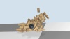 一座由木块搭成的塔被球击中。在此仿真中,56 个物体以传统方法难以预测的复杂模式相互作用。