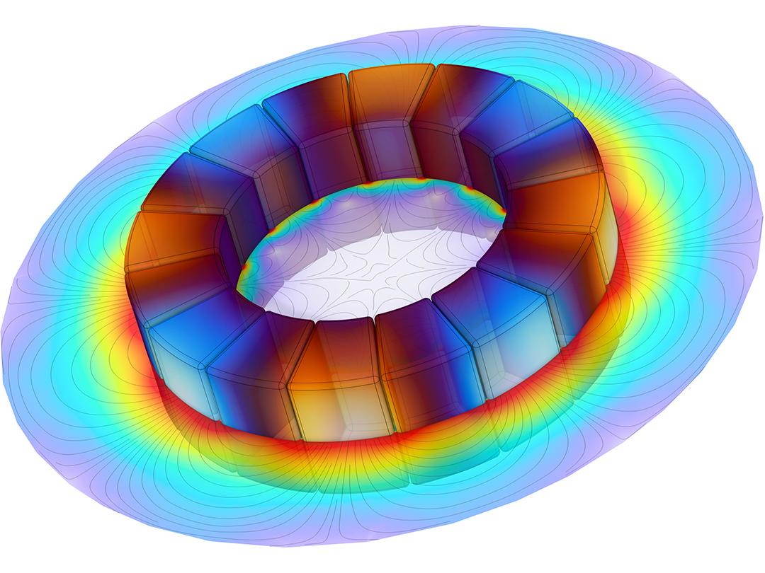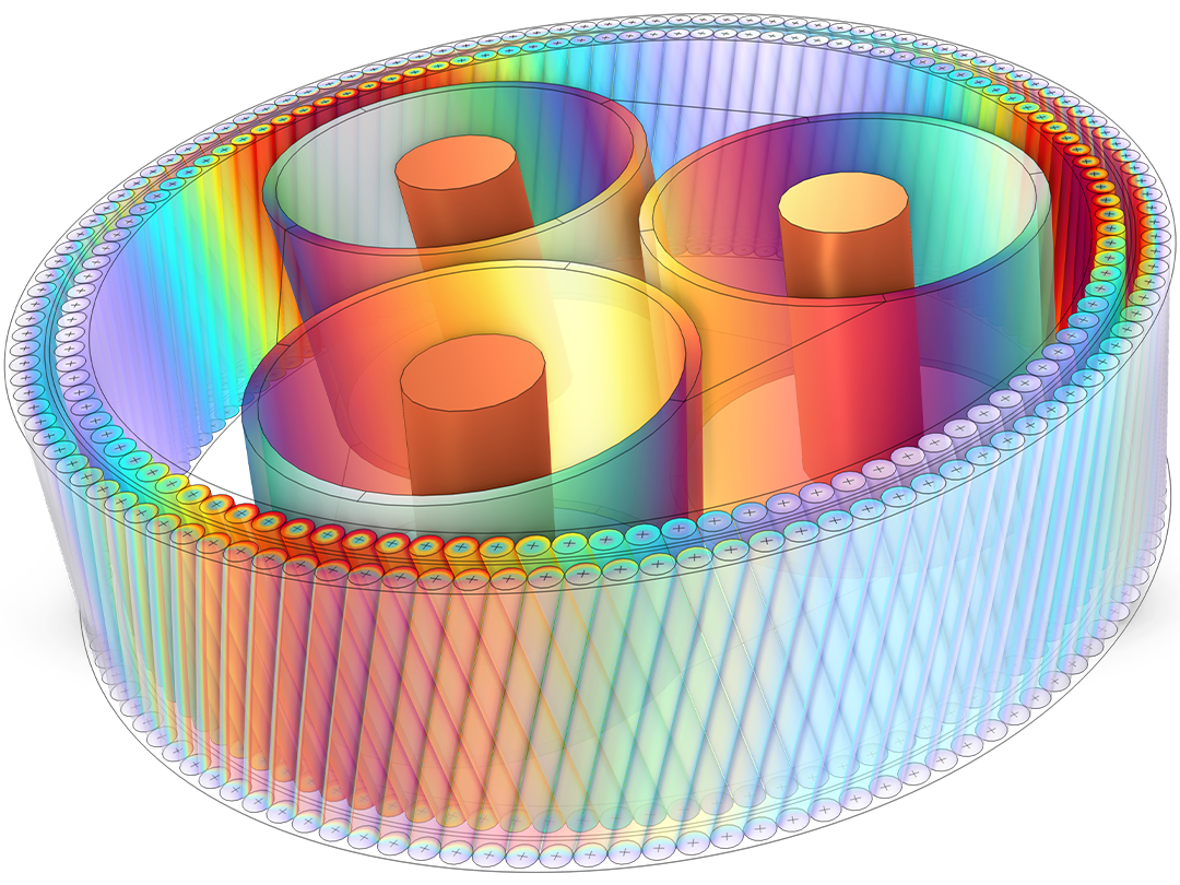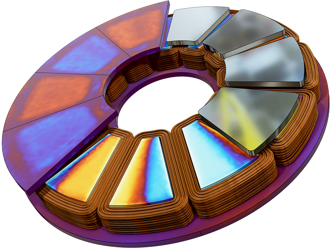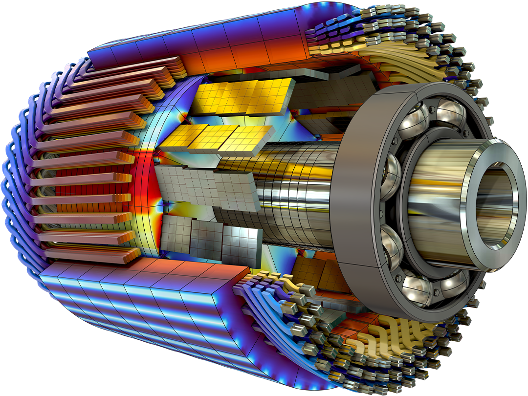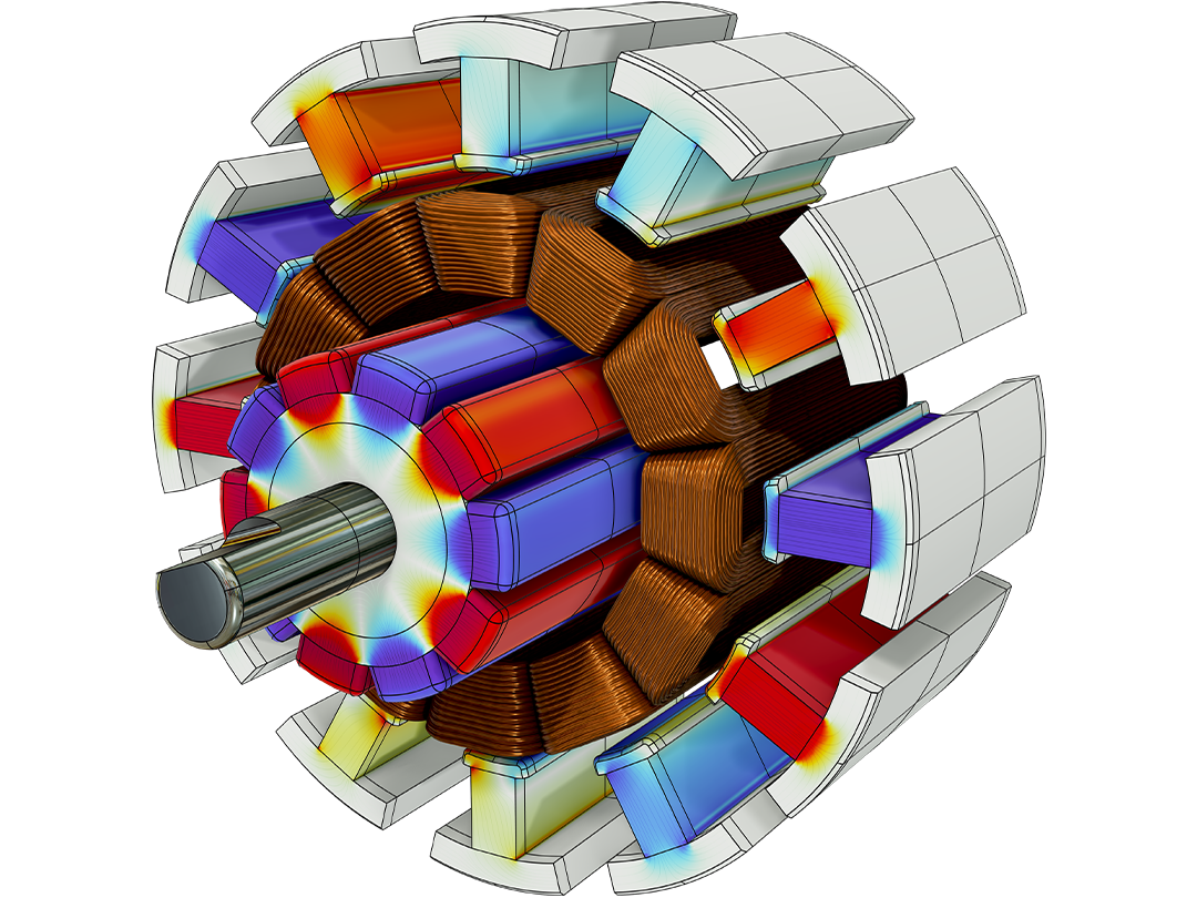 By combining the AC/DC Module with other physics modules, multiphysics analyses — including structural mechanics for deformation, rotordynamics, heat transfer for thermal management, acoustics for noise and vibration, and CFD for cooling channel optimization — can be performed.