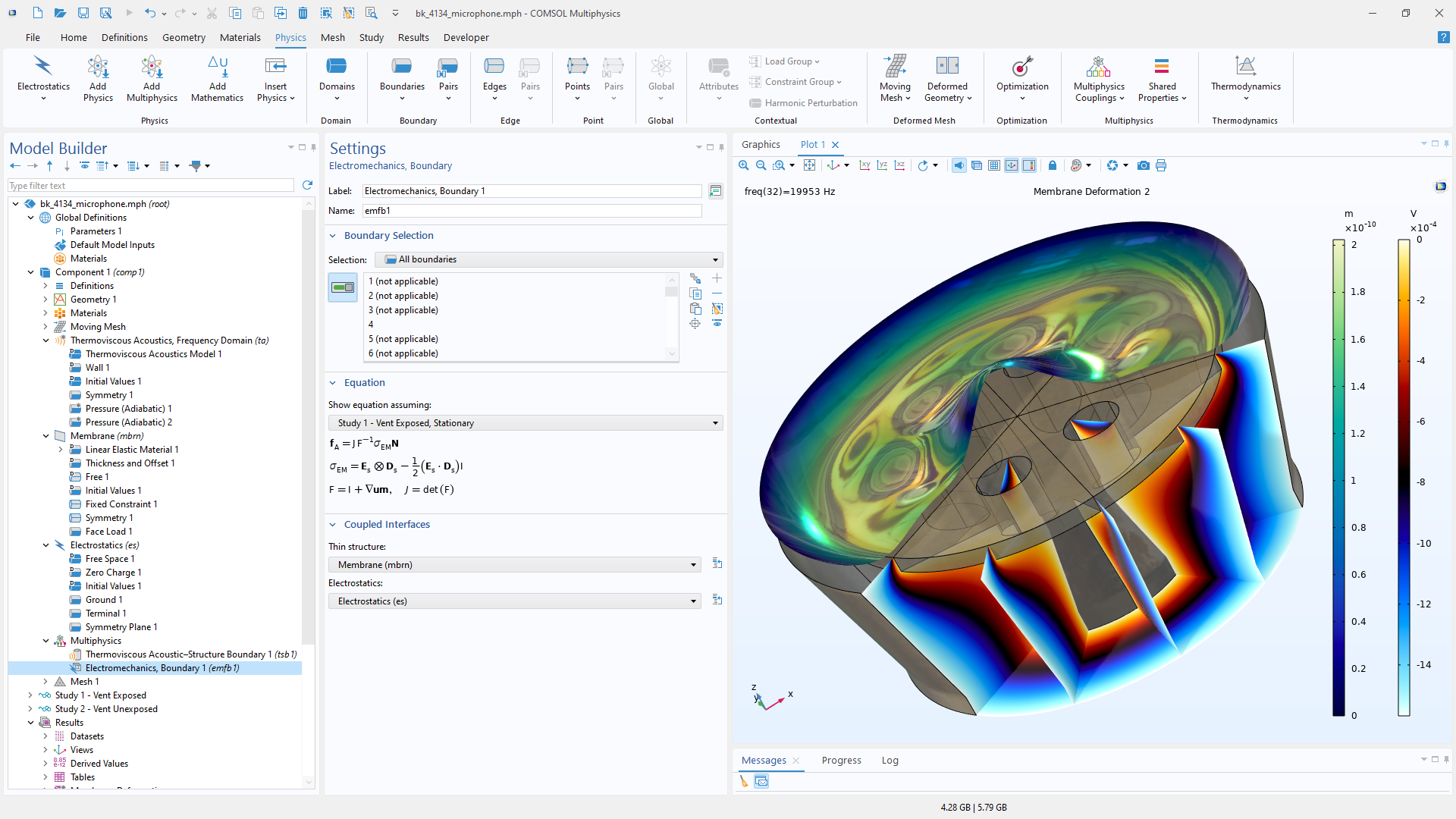 Built-in multiphysics couplings provide functionality for modeling magnetomechanics, electromechanics, Joule heating and thermal expansion, induction heating, piezomagnetism, piezoelectricity, piezoresistivity, nonlinear magnetostriction, electrostriction, ferroelectroelasticity, the thermoelectric effect, pyroelectricity, and magnetohydrodynamics.