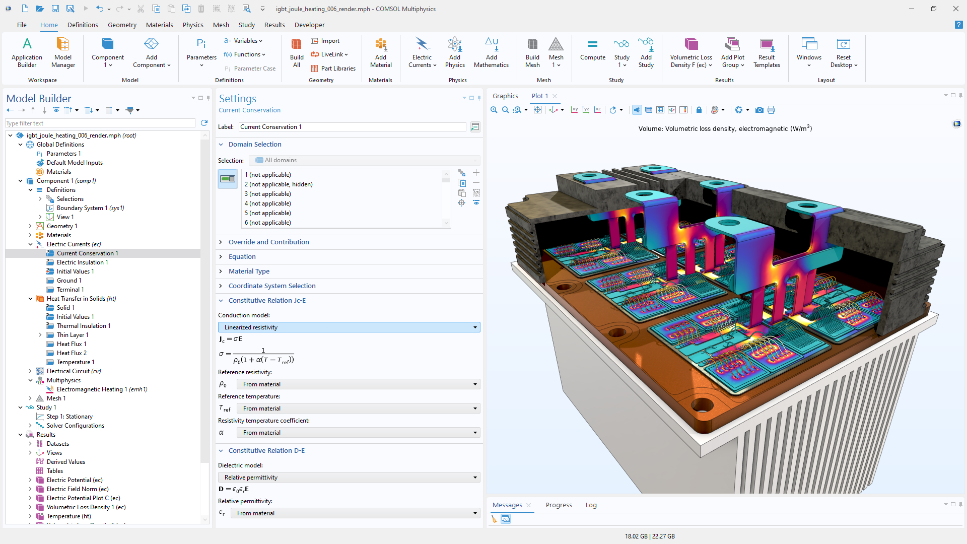 固体、流体、壳和多层壳中的焦耳热(也称为电阻热)。