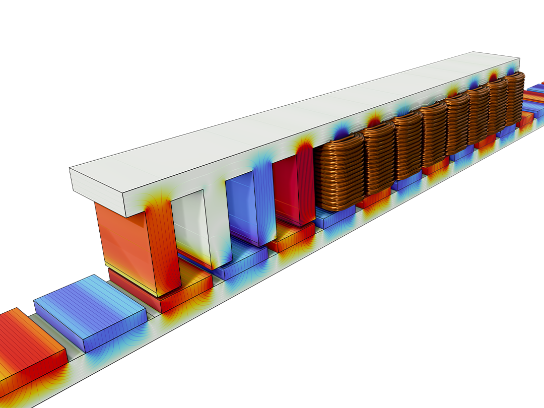 Typical applications include coils, induction chargers and heaters, switches, busbars, transformers, PCB transient effects, shielding, crosstalk, superconducting devices, magnetohydrodynamics, and nondestructive testing (NDT).