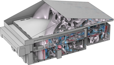 In this model, the acoustics of the Small Hall in the Konzerthaus Berlin is simulated with Pressure Acoustics, Time Explicit. This method can take advantage of running on GPUs. A study of the room is performed in the low frequency range. The room acoustic parameters are derived from the calculated impulse responses, and the results are compared with measurement data from a round robin study on room acoustic simulations.